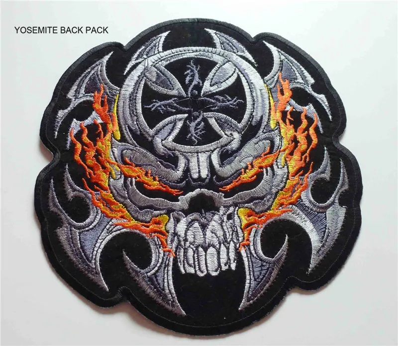 Big Size Fire Skull Back Patches Embroidered Motorcycle Mc Biker Patches Iron On Sew On Motor Racing Rider For Vest Jackets Patches Aliexpress